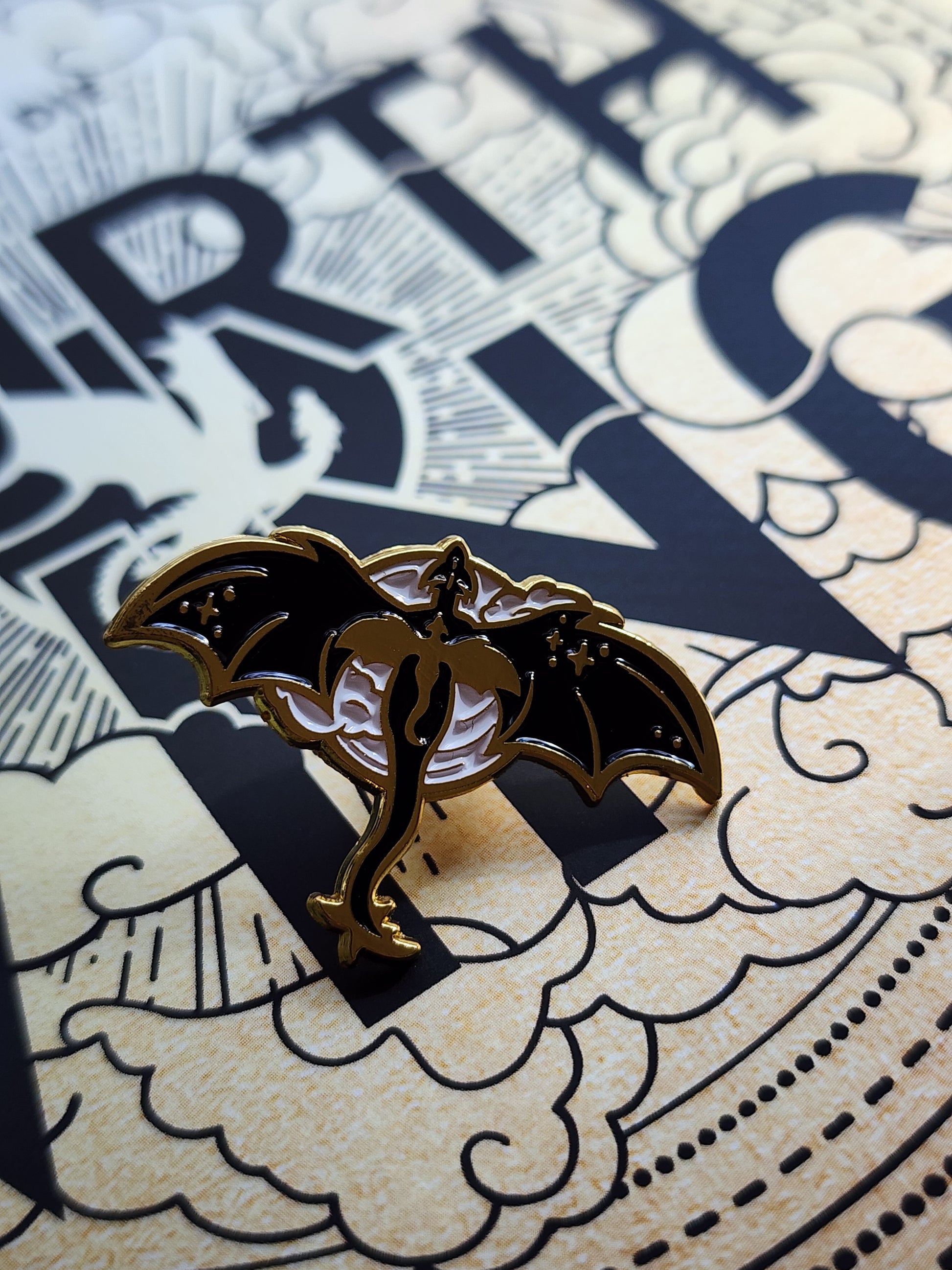 A fun pin with Tairn and Andarna, two of our favorite dragons! 1.37"x0.94" with a single back pin.
